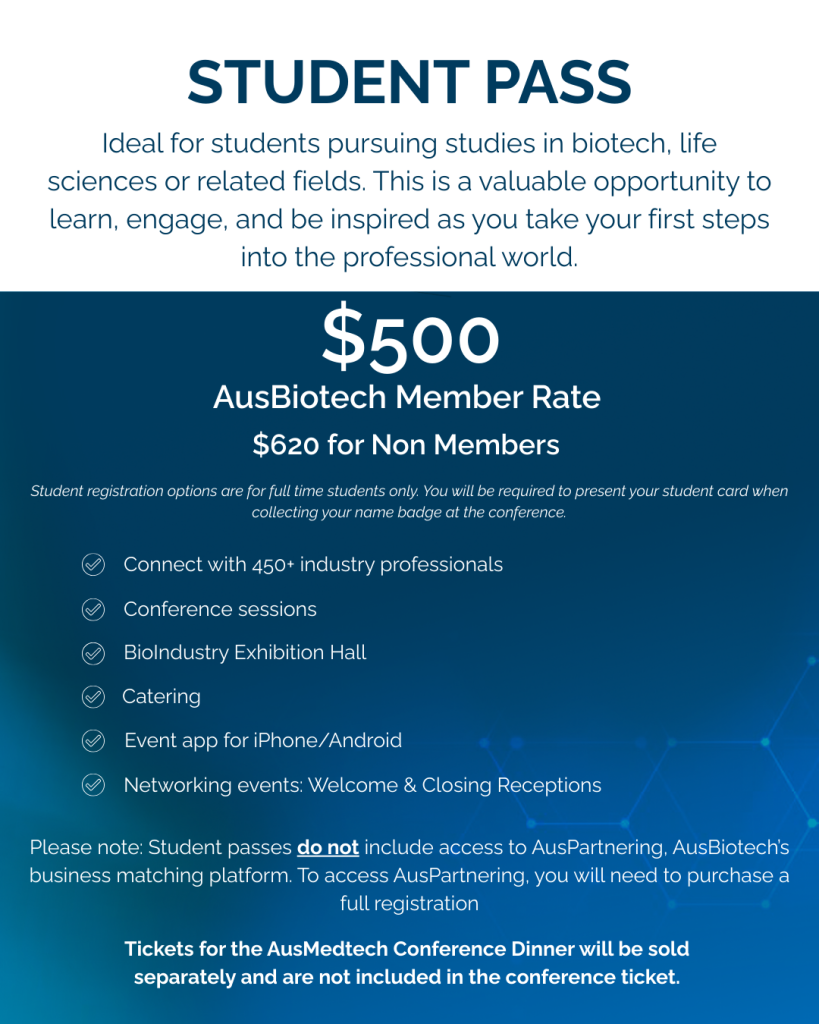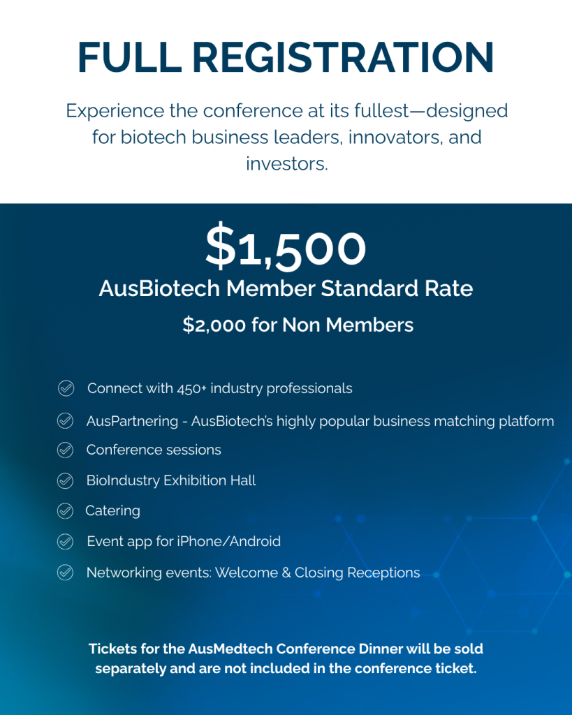 For further details, please contact the AusBiotech Events Team at events@ausbiotech.org